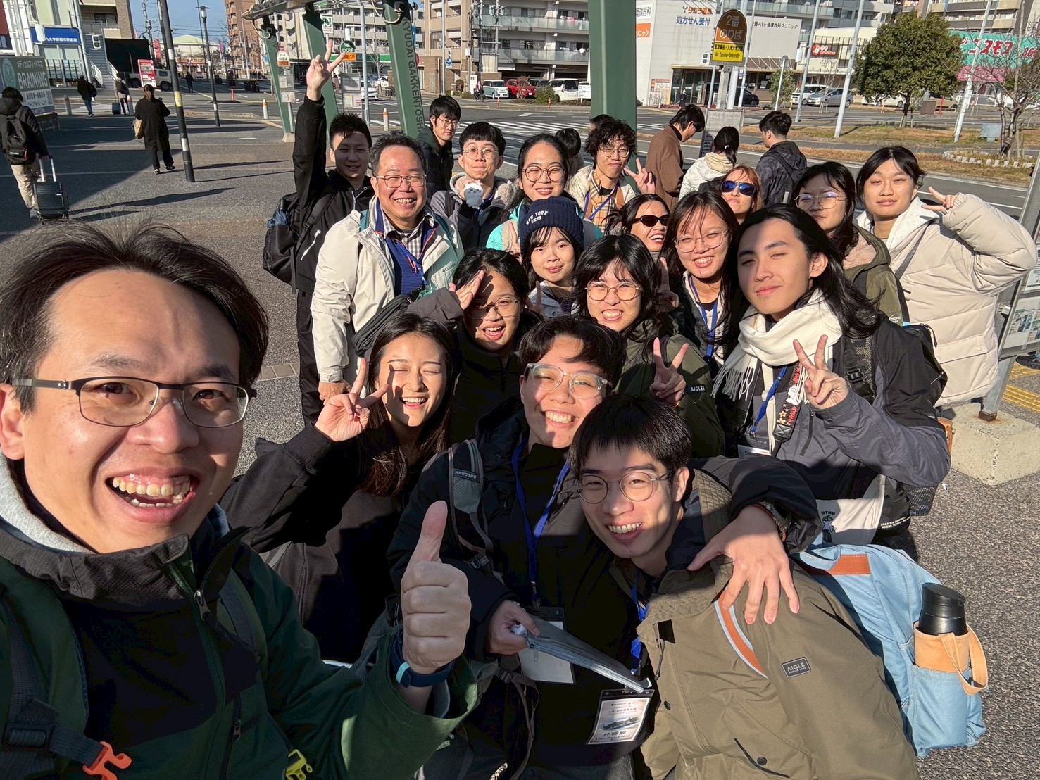 A total of 18 students (undergraduate and graduate students) and two faculty members joined us from Taiwan. Taiwan, like Japan, frequently experiences earthquakes and flood disasters, and through this excursion we examined similarities and differences in geological and meteorological conditions, as well as disaster response strategies, from a geological perspective.