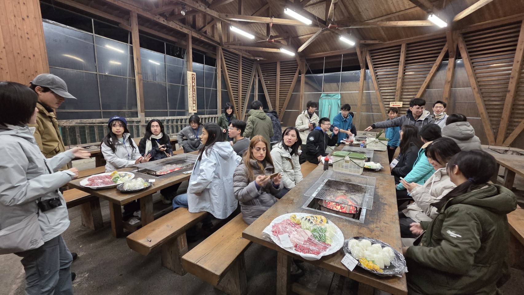 夜の食事 2日目はバーベキュー(七城温泉ドーム 研修施設)